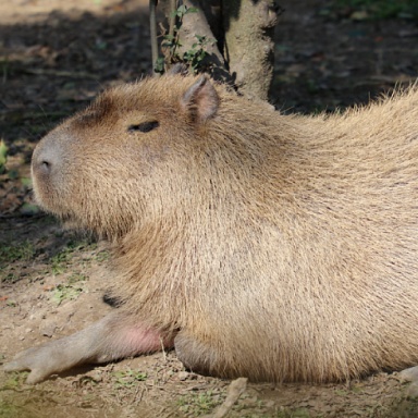 水豚是体型最大的啮齿类,重35至66千克。前肢较后肢短,脚趾间有蹼,无尾。水豚头大颈短,眼睛、耳朵和鼻孔位于头顶,口腔前部有两颗大门齿,咬肌发达。它们的皮毛粗糙且薄,主要为红棕色,腹部为黄棕色,面部有时呈黑色。