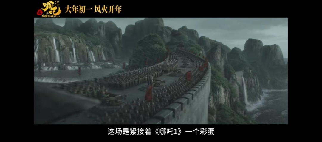 在《哪吒之魔童闹海》中,当申公豹率领海底妖族围攻陈塘关时,能够看到巍峨的陈塘关有多条用于排水的渠道,哗哗哗的流水打破了大战前的寂静。