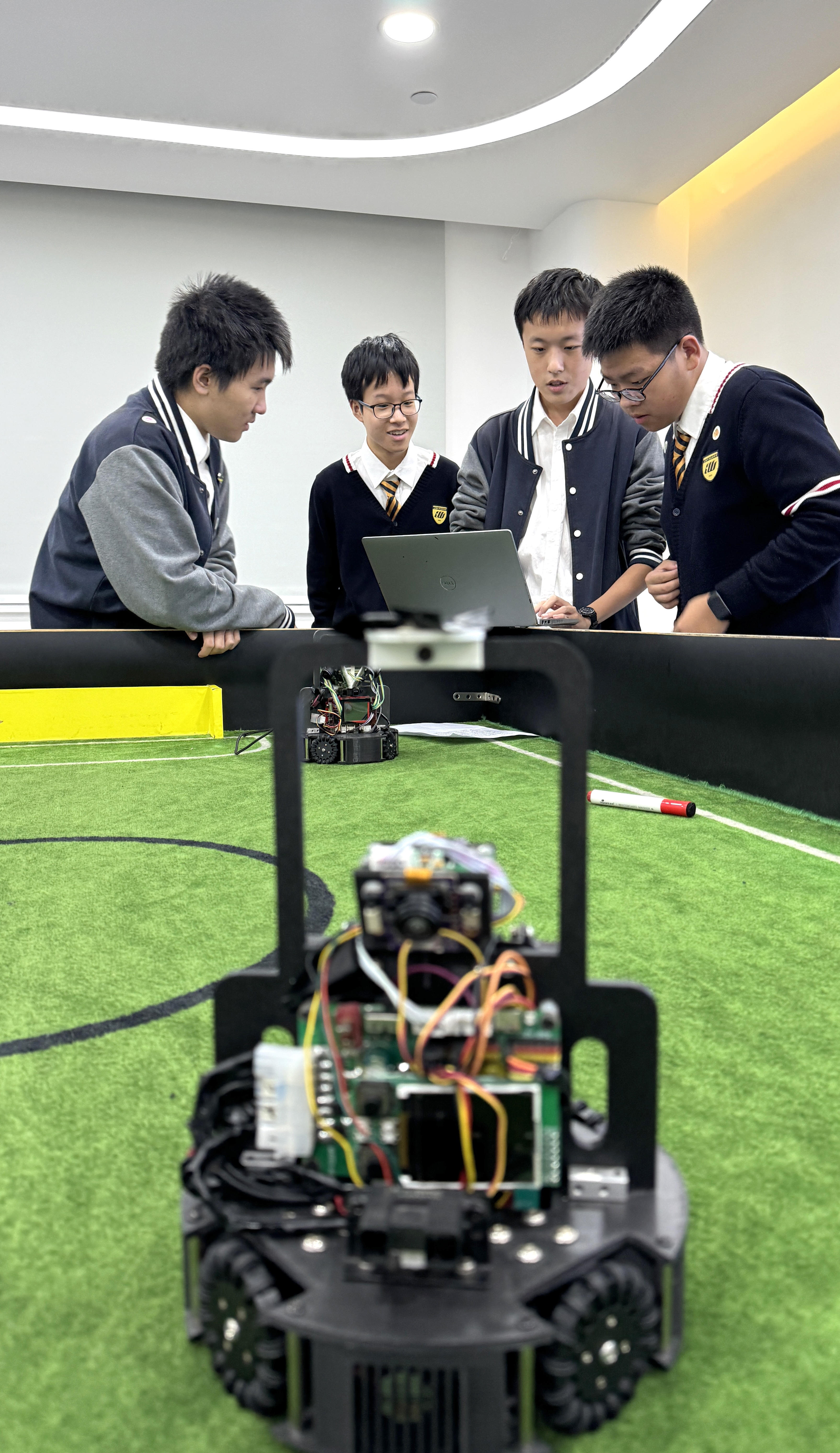 这还是一个开放、共享的“部落”。每周五,卢湾高级中学将所在学区的部分中小学生请进来,和大哥哥大姐姐们享受同样的师资与设备,一起玩转机器人。就在上个月举行的2025Robocup青少年世界杯中国赛上海地区选拔赛中,卢湾高级中学携手卢湾中学、海华小学和师专附小组成多支战队,一举包揽机器人足球小学组、轻量组和重量组的冠军。