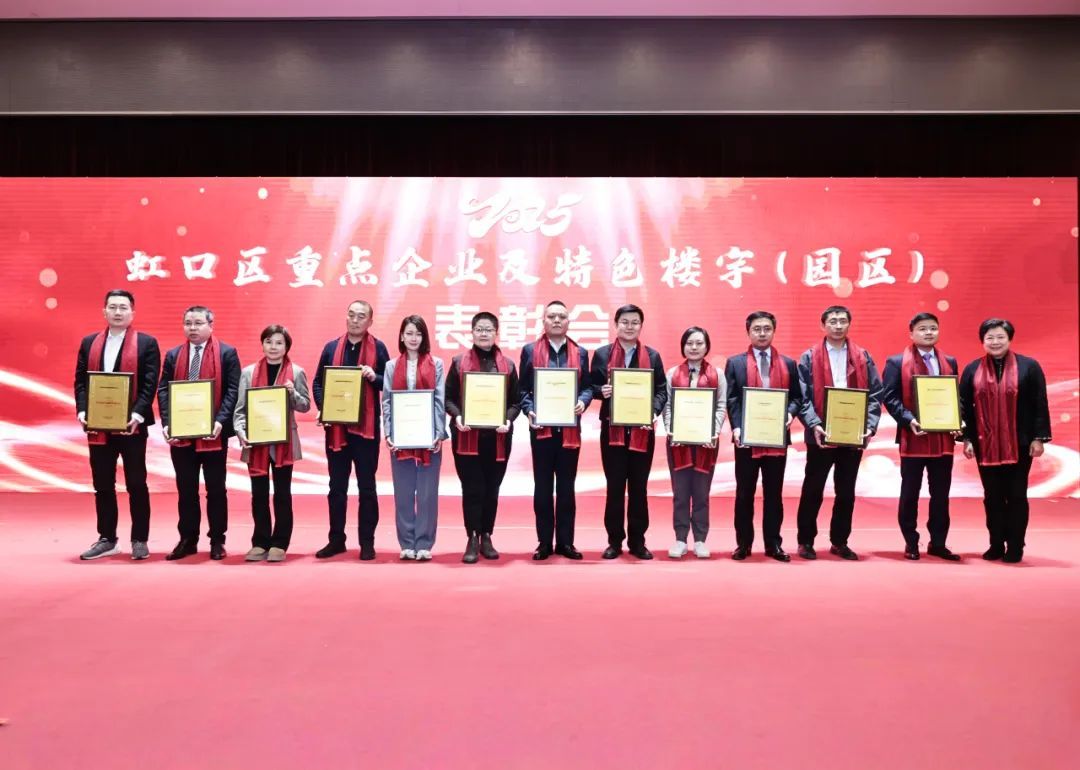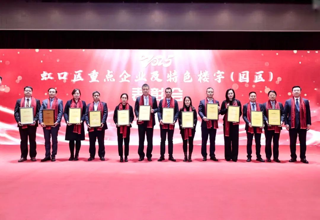 会上对2024年度虹口区经济发展突出贡献企业、特色楼宇园区、重点外资企业、科创及高成长企业、稳增长突出贡献企业、产业引领新锐企业和深耕虹口优质企业予以表彰。