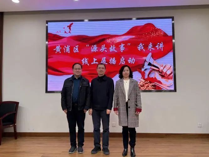 会前,区“初心之声”机关公务员宣讲团荣誉团长凌世安、团长张健、副团长陈怡共同按下手印,启动黄浦区“源头故事”我来讲线上发布活动。