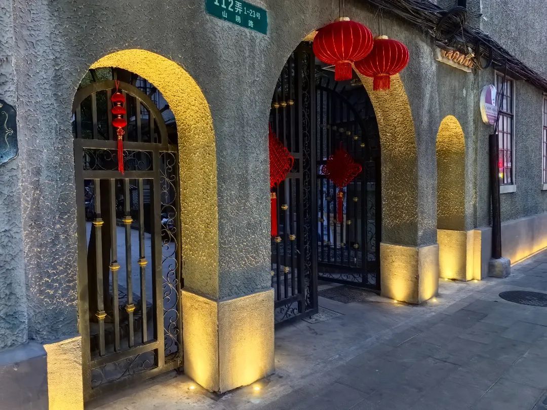 例如,淞云别墅弄堂口的顶灯采用历史原貌,再现往昔风采;留青小筑沿街面和拱门内侧的洗墙灯,巧妙凸显拱门造型特征;大陆新邨柱脚地面射灯的灯光投射,既展现出弄堂口立柱的厚度,又增强了灯光自身的立体感;恒丰里弄堂口门头匾额在灯光的映衬下,于夜幕中尽显岁月的沧桑。同时,街道还对部分年久失修的灯柱进行了恢复,在保留历史韵味的同时,最大程度地实现了资源的最大化利用。