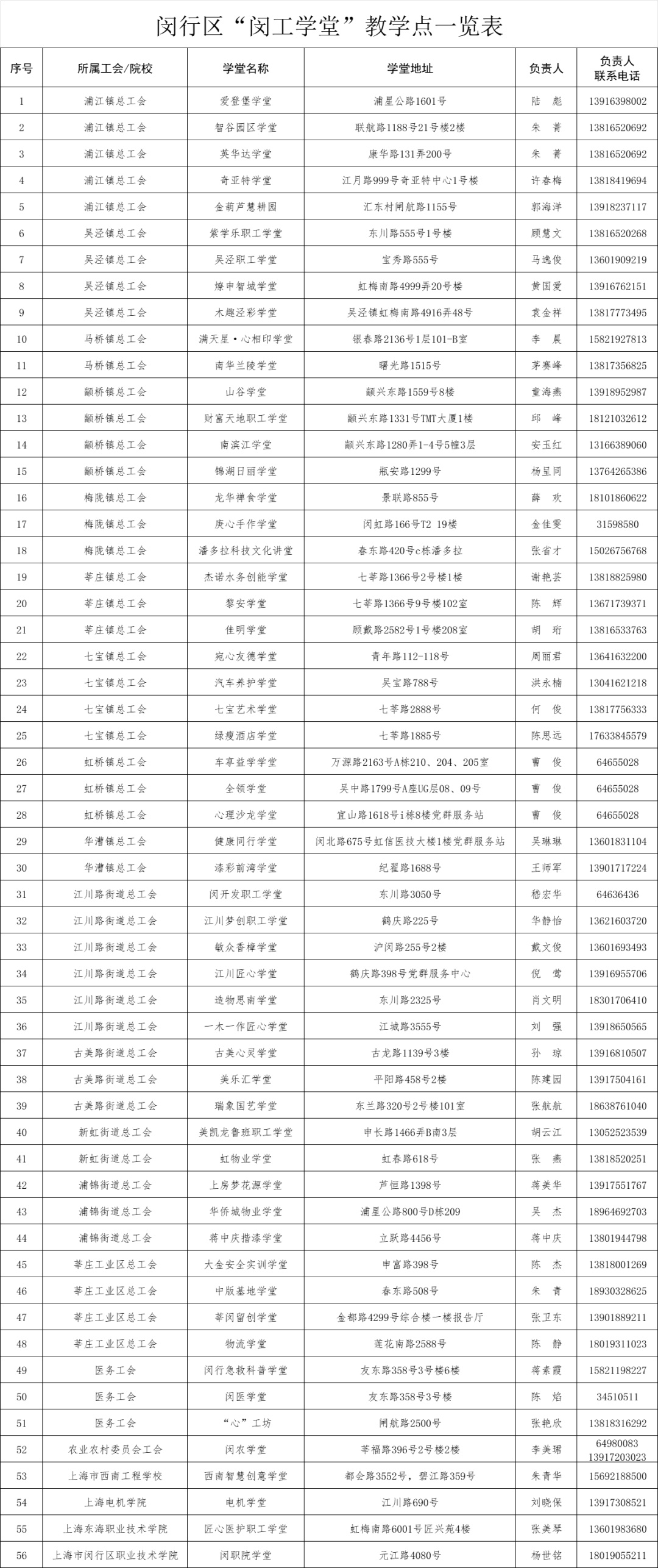 “闵工学堂”是由闵行区总工会创建,旨在用公益性的职工学堂,为闵行职工搭建一个提升素质、实现自我增值的开放式培训平台。目前,已依托园区、企业、职业院校、相关职能部门等资源,在全区创建了56家“闵工学堂”,其中36家被市总工会命名为“上海职工学堂”。