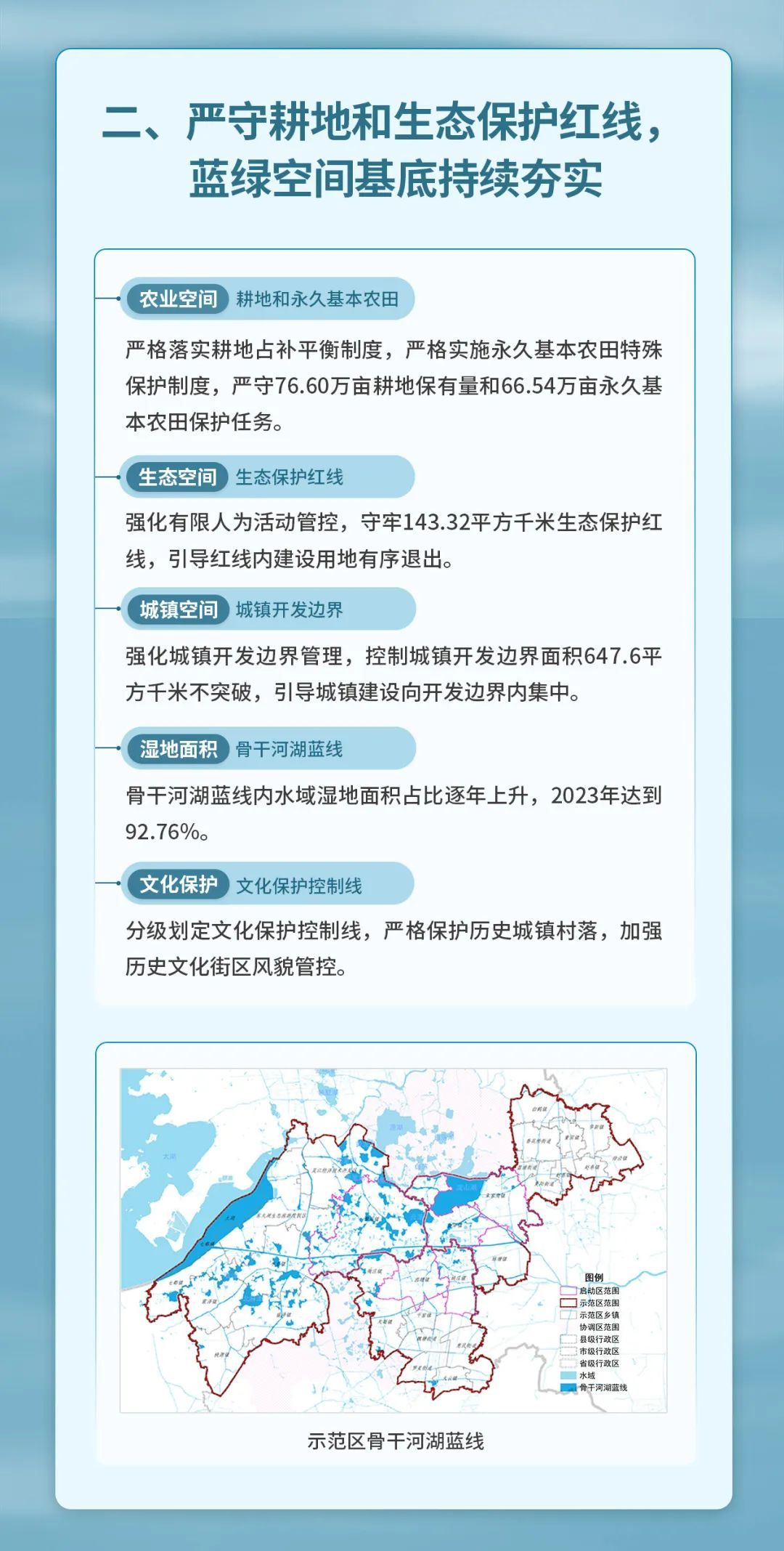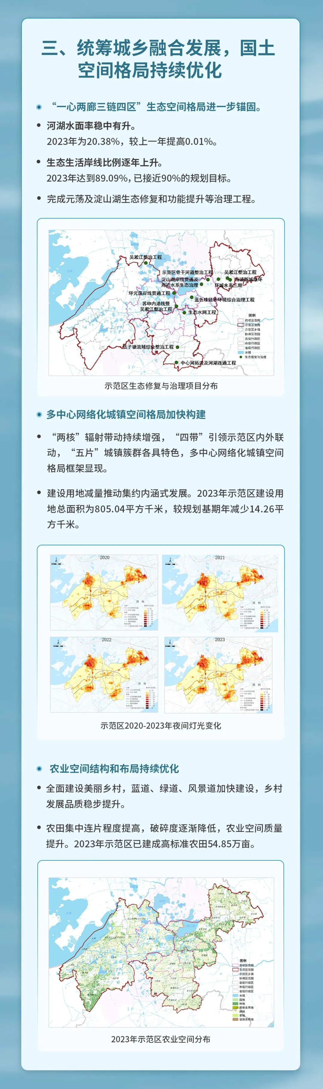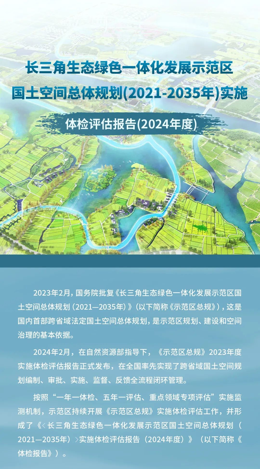 2月20日,示范区执委会会同自然资源部国土空间规划研究中心、沪苏浙两省一市三级八方编制完成《<长三角生态绿色一体化发展示范区国土空间总体规划(2021—2035年)>实施体检评估报告(2024年度)》,对示范区总规实施情况进行体检评估,揭示示范区高质量发展的空间密码。请随小编一图读懂。