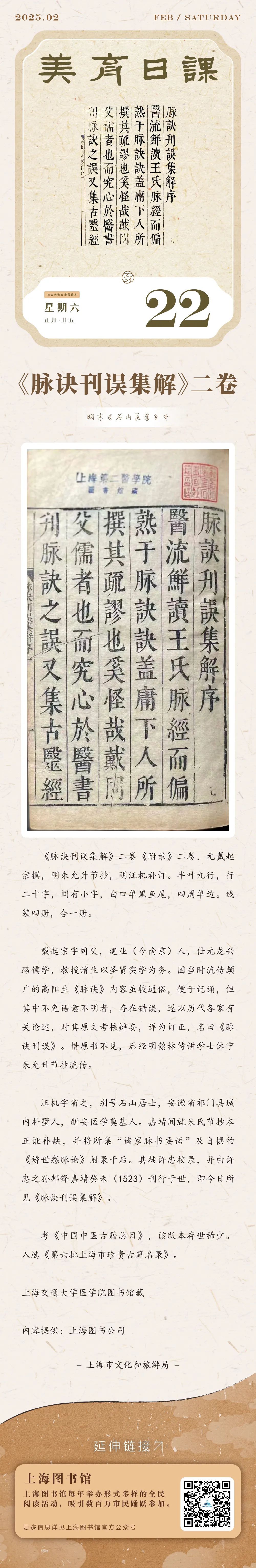 美育日课 | 《脉诀刊误集解》二卷:明末《石山医案》本