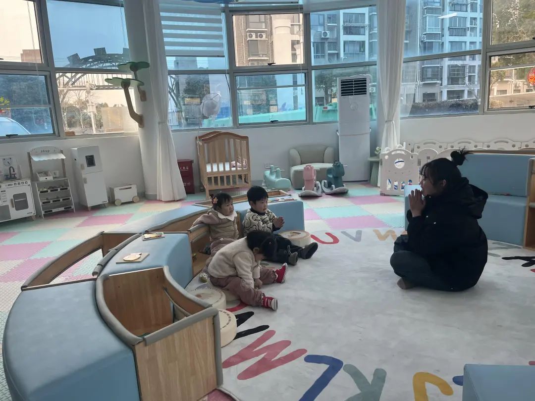 “小白兔,白又白,两只耳朵竖起来......”上午9点半,西渡街道水岸宝宝屋内,孩子们正跟随老师唱歌互动。除一名新来的幼外,其余均为宝宝屋的“常客”。在宽敞明亮的教室里,孩子们或参与游戏,或自主探索,活动井然有序。