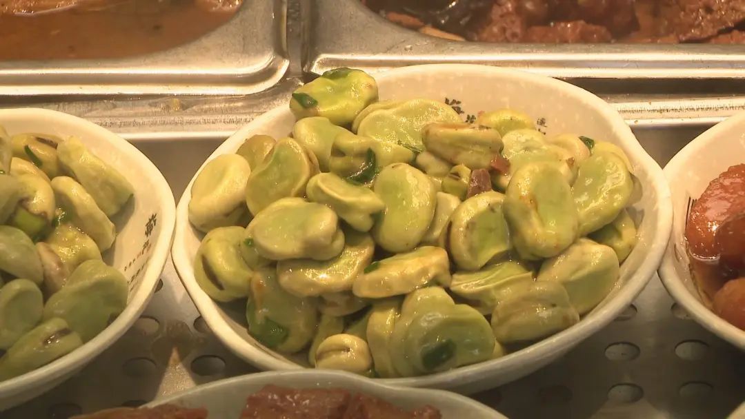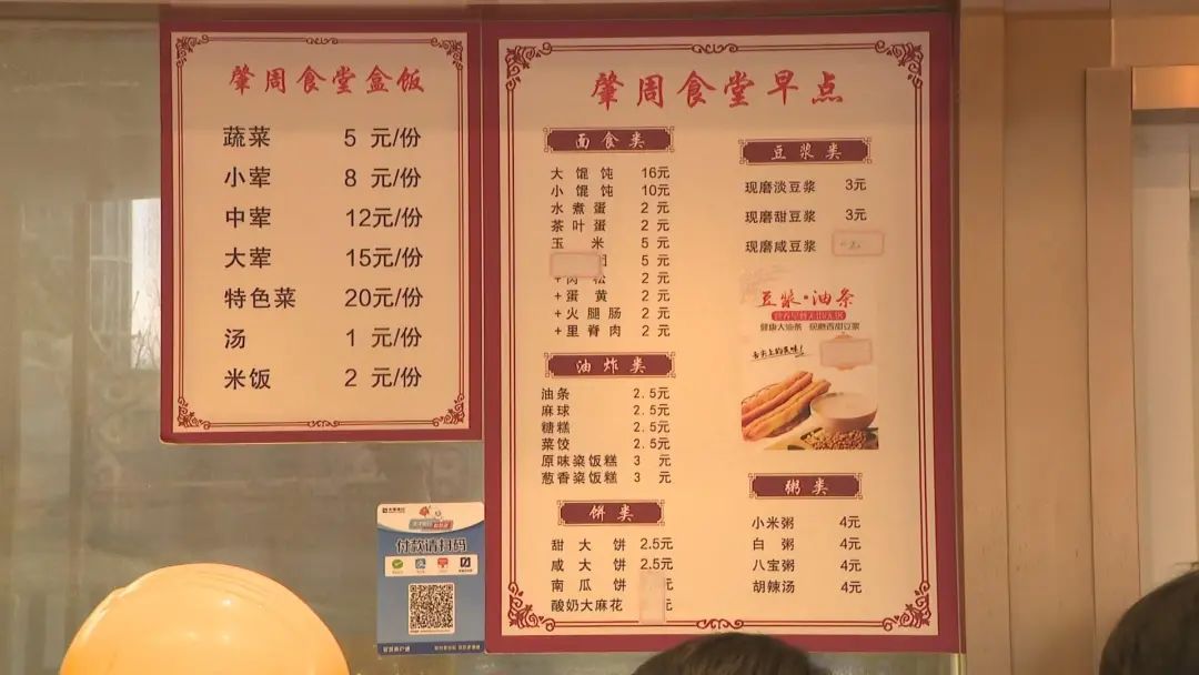 中午11点刚过,记者在“肇周食堂”看到,前来就餐的消费者已经把整个食堂挤得满满当当。张贴在醒目位置的价目表清晰地显示:蔬菜每份5元,小荤每份8元,中荤每份12元,大荤每份15元,特色菜每份20元,汤每份1元,米饭每份2元。在菜品长台上,摆放的菜品十分丰富,红烧肉、黄酱、清蒸鱼、熏鱼、黄瓜等菜肴份量都比较足,时令的菜肴也不少,油焖笋、韭菜炒蛋、葱油蚕豆等也都能看到。