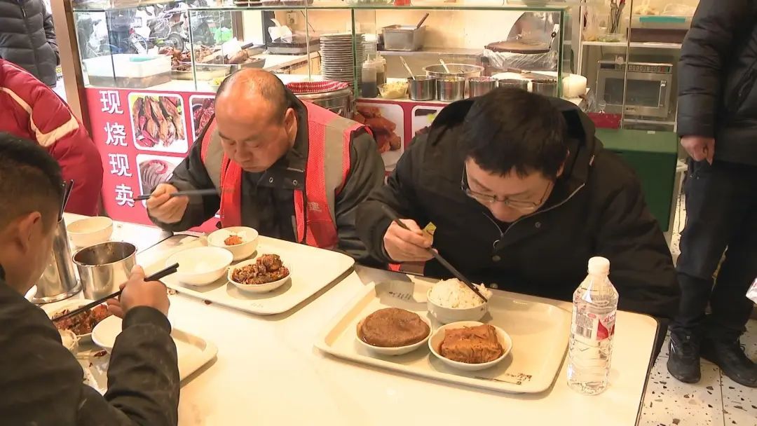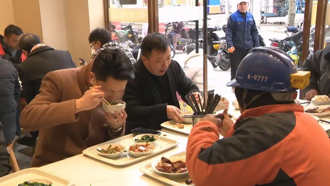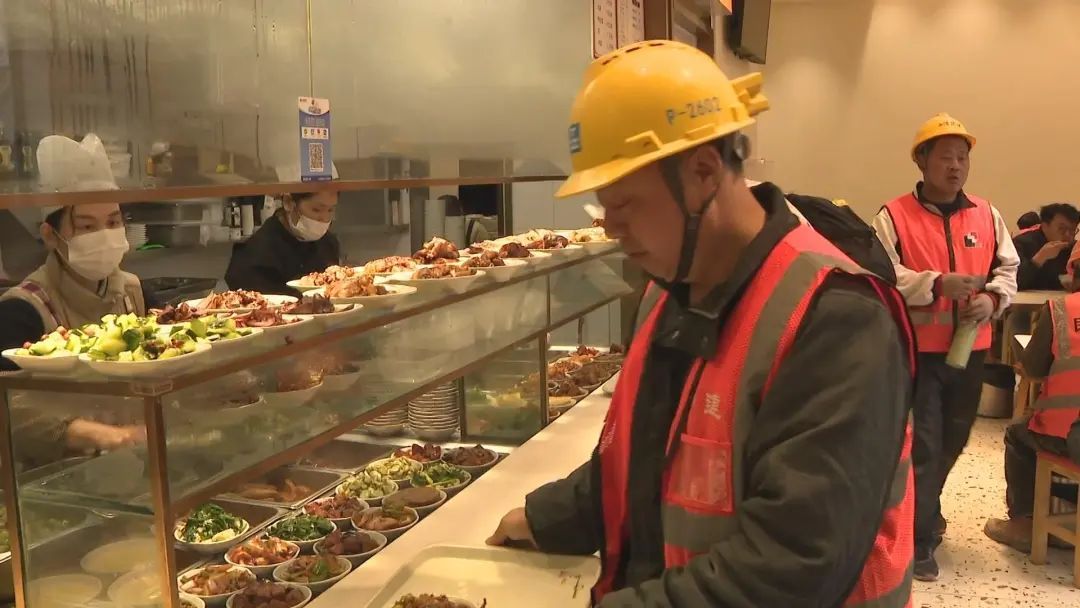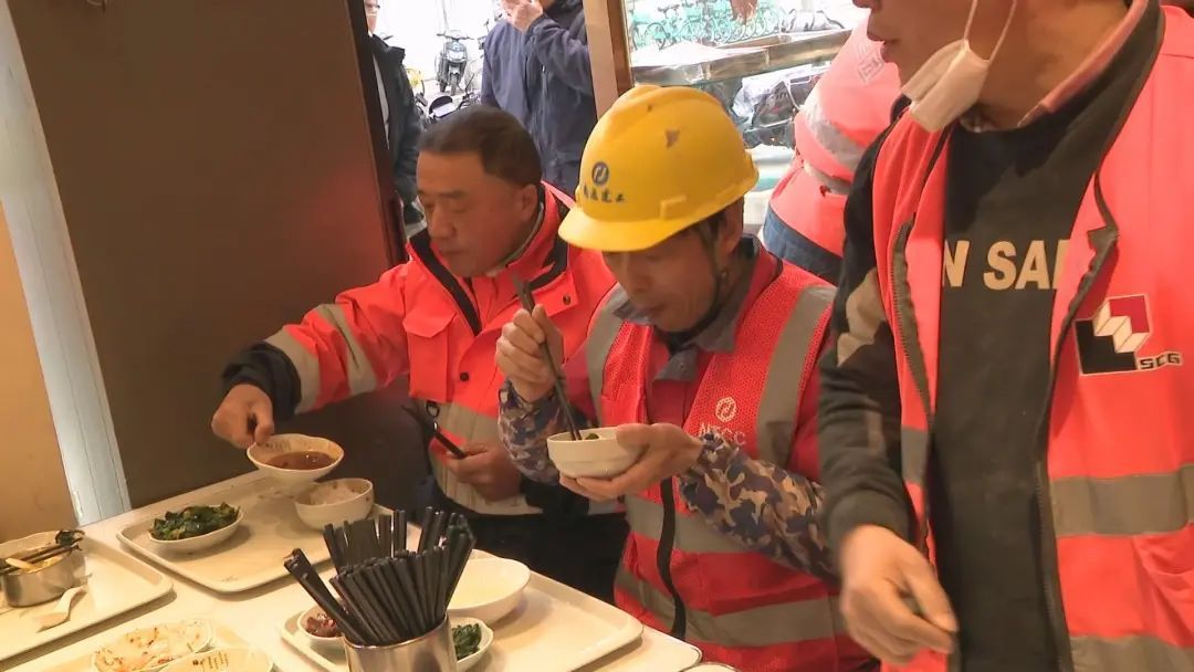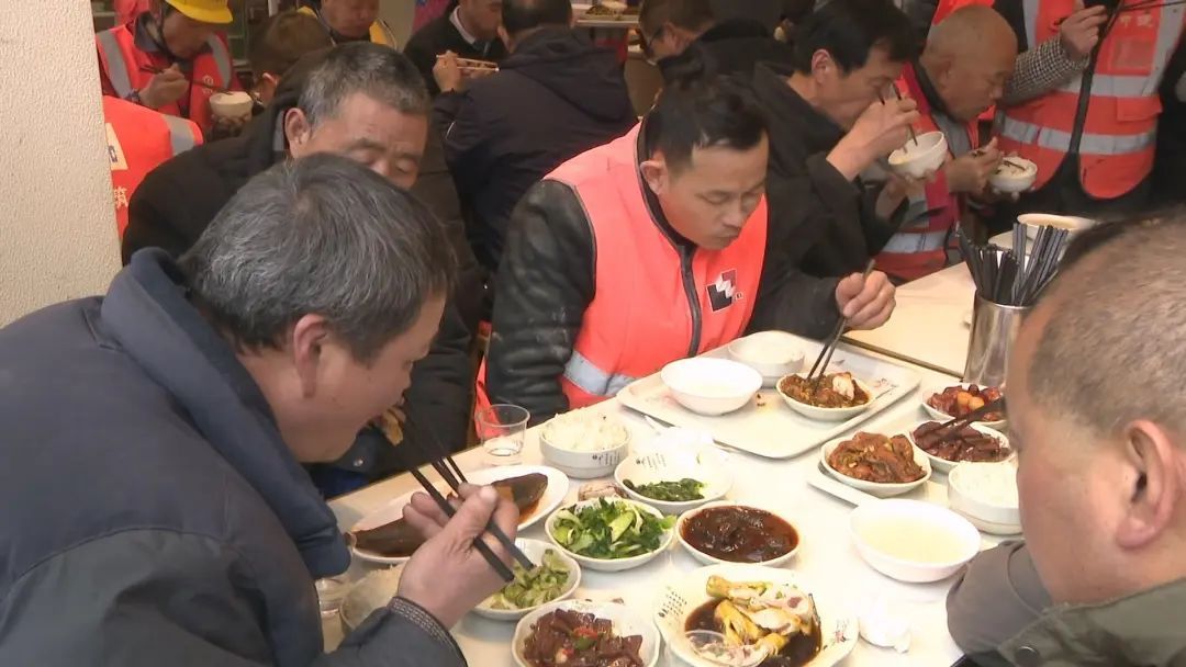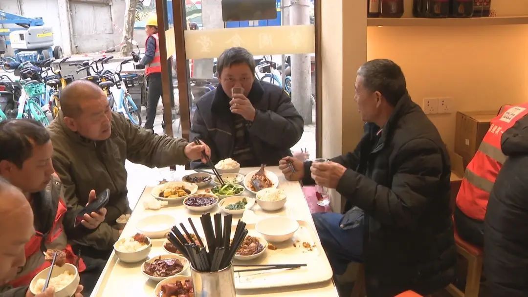 不少周边工地的工人点上两个菜,找个空位就大口吃了起来。一些食客还结伴而来喝上一口。姬师傅告诉记者:“今天我们三人一起拼个菜,点了红烧鱼、葱油鸡、红烧茄子、辣味猪血、葱油蚕豆、清炒青菜和菠菜,一共65元,很便宜,味道也蛮好。”顾师傅告诉记者:“这个地方实惠、卫生、干净,所以我们每天过来。以前我们路边上随便吃点,但是不卫生,有时吃了肠胃不舒服。自从这边开了之后,我们全部过来了。我们这边的工地上有1000多人,大多数人都在这里吃的。”