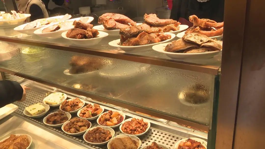 据介绍,食堂老板以前是在菜场做水产生意,后来想着改行,在经过了市场调研后就在菜场里开设了这个食堂。一日三市,从早上五六点钟到晚上七八点钟。肇周食堂老板邱凤告诉记者:“我们最低标准定位在每个人10元吃饱。每天菜品都是循环的,大约有80个品种,每天有固定的几个菜,比如红烧肉、糖醋排骨、红烧大排等。小荤小素基本上是随机的,这些菜每天都是清仓清完的,保证每天货源是新鲜的。不管是工人也好,上班族也好,都是保证安全、卫生、吃饱。”