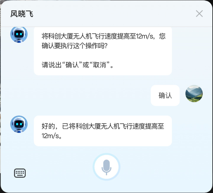 传统的无人机机库调度,需要先由工作人员创建航线、设置飞行目标地点、创建对应机场任务。而后,操控无人机按既定航线,飞至指定目标。发布“风晓飞”的南京大翼航空科技有限公司,创新推出行业首个多模态交互引擎,深度融合语音与文本控制功能,能够精准适应复杂多变的作业环境,为无人机操控带来前所未有的便捷与高效。“你怎么说,它就怎么飞”,工作人员只需发出语音指令,说出飞行目标地址后,AI就会为无人机自动规划航线、自动起飞,降落在目标地点,大大简化了操控流程,让无人机的使用变成“零门槛”。