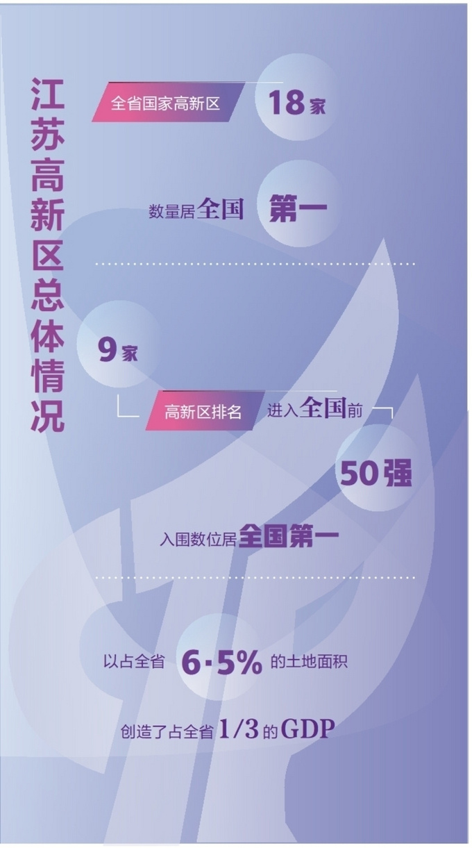 高新区是江苏创新驱动发展的主阵地。目前,全省国家高新区有18家,数量居全国第一,是全国首个实现国家高新区设区市全覆盖的省份。经过多年发展,高新区已成为全省最具竞争力的创新高地、产业高地和人才高地。