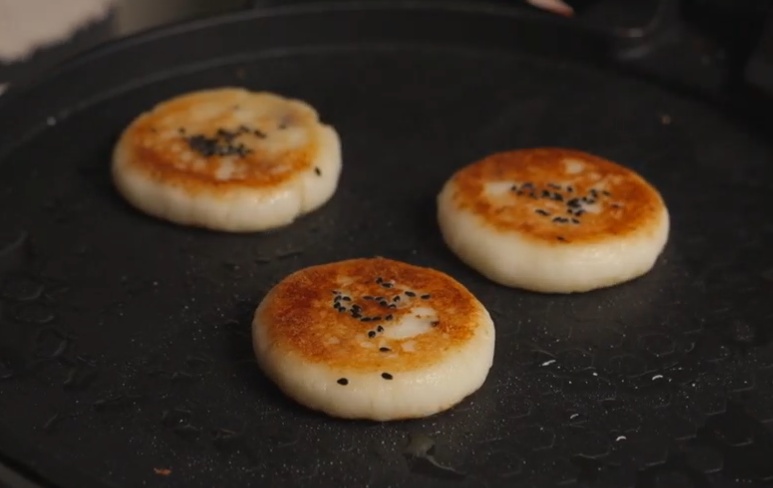 6.电饼铛刷少量油,煎3分钟,翻面再煎2分钟。