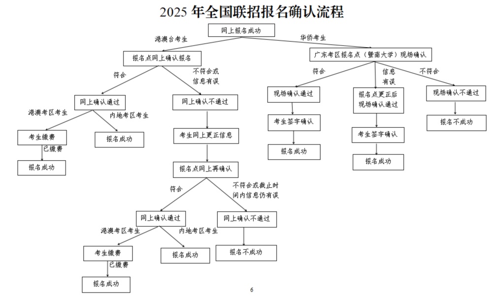 华侨考生须根据网上报名预约的时间前往广州考区报名点(暨南大学)进行现场报名确认,具体安排由广州报名点确定并公布。