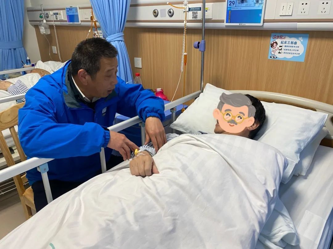 在就诊期间,陪诊师小汪不仅协助完成挂号、取药、与医生沟通金爷爷的情况等工作,还详细记录医嘱,耐心安抚老人情绪。检查结果显示,老人两侧基底节区多发腔隙性脑梗塞,伴有肺部炎症,需住院治疗。陪诊师全程帮助家属办理住院手续,妥善安置金爷爷到病房。次日上午陪诊师到医院回访时,金爷爷精神明显好转,沟通过程愉悦,脸上洋溢着安心的笑容。陆阿姨紧握着陪诊师的手感慨道:“小汪,多亏有你,不然我都不知道该怎么办,住进来总算安心了,谢谢你的帮助。”