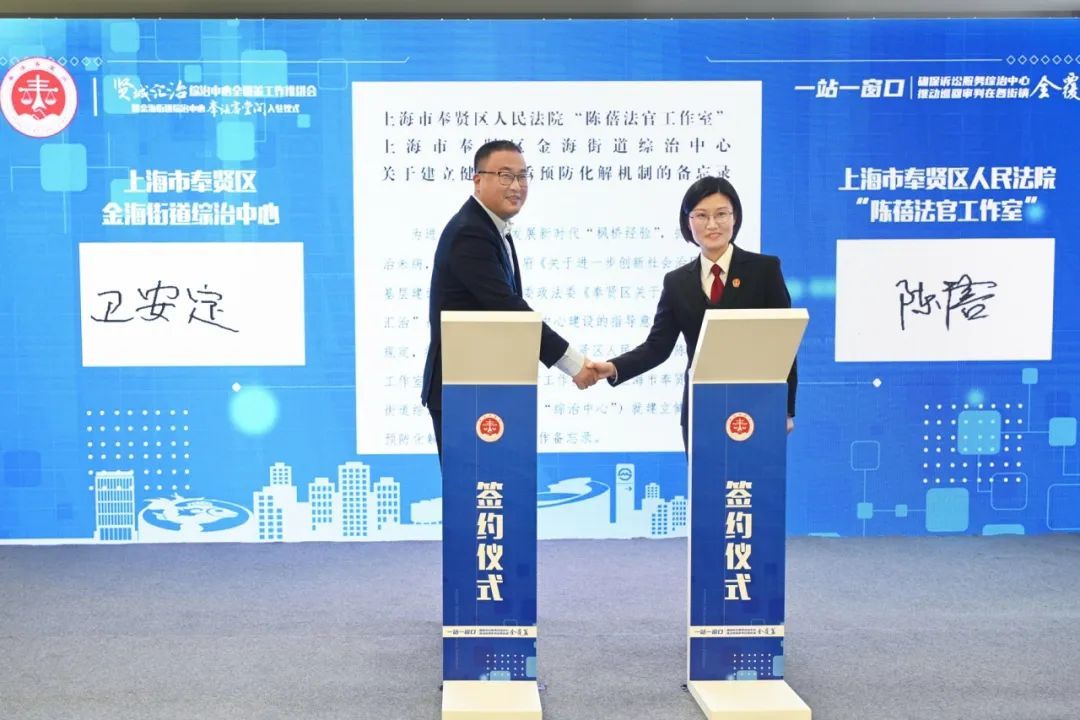 2月25日下午,上海市奉贤区人民法院(以下简称“奉贤区人民法院”)融入“贤城汇治”综治中心全覆盖工作推进会暨金海街道综治中心“奉法客堂间”入驻仪式在奉贤区金海街道综治中心举行。至此,“奉法客堂间”巡回审判站、诉讼服务窗口已在奉贤区13个街镇实现全覆盖。