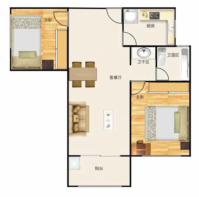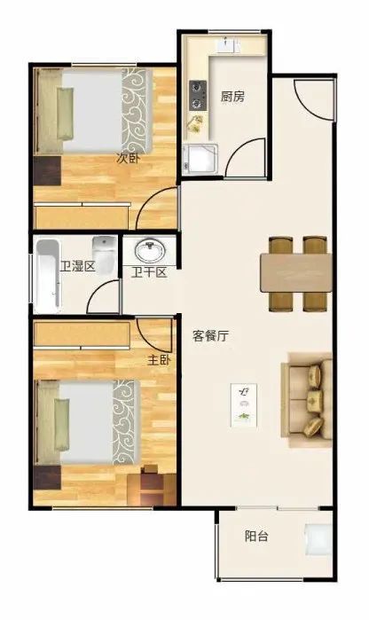 客厅:餐桌、餐椅、沙发、茶几、空调等;
