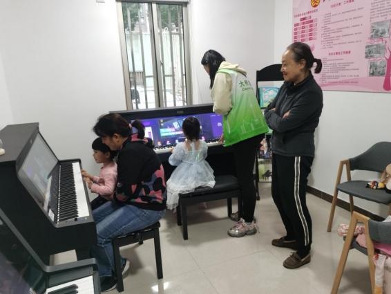 在大桥街道社会工作办的悉心指导与大力支持下,“月琴舍”里添置了3架共享智慧钢琴,可以满足不同年龄段居民的学习需求。同时,钢琴厂家专门为社区志愿者提供了系统的使用培训,确保他们能够熟练操作并帮助居民解决问题。