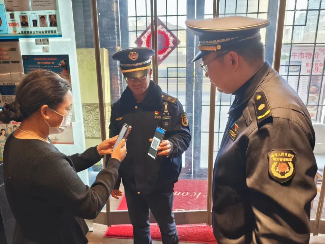 “您好,这是我们本次检查任务的二维码,您可以通过‘随申办’App查看本次检查的部门、人员、事项、结果,也可以对我们的执法行为填写回单进行评价。”