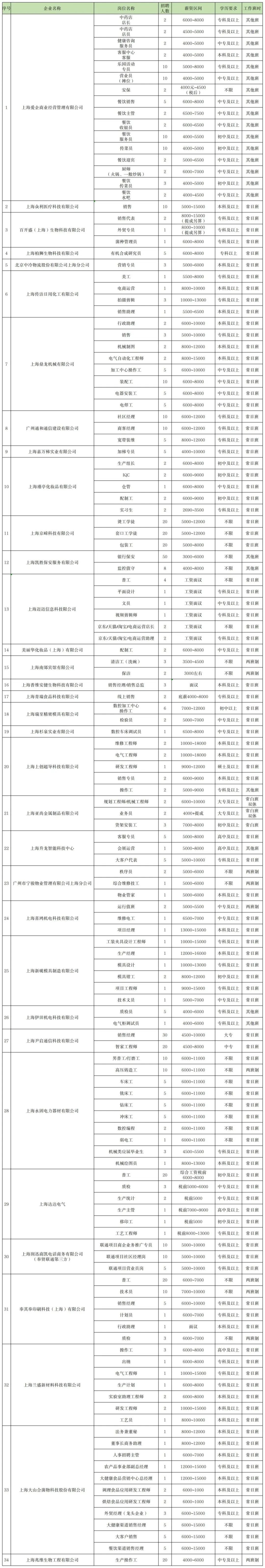 34家企业 133个岗位 招聘615人