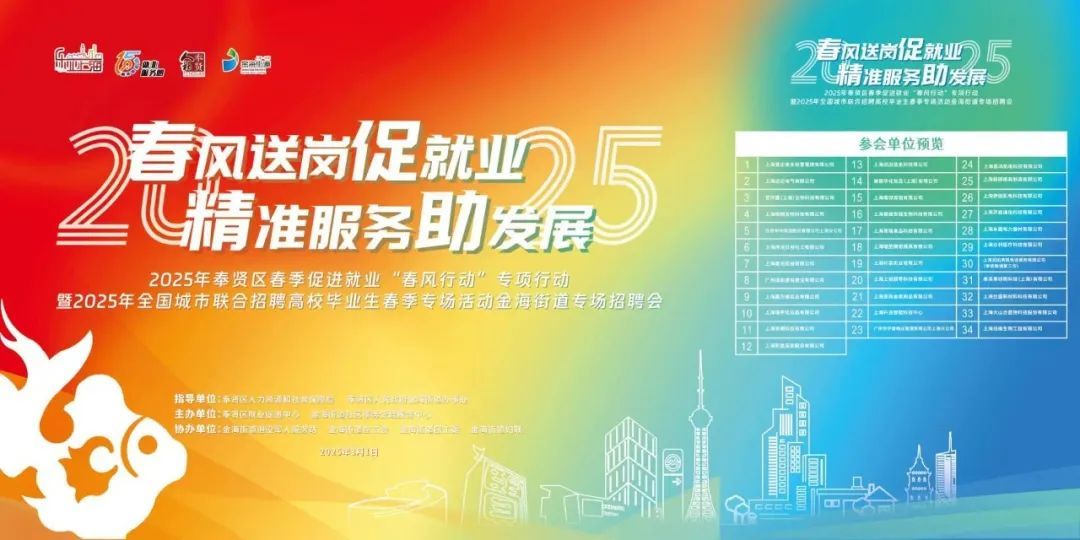 为全力促进求职者高质量就业,满足企业用工需求,金海街道将于3月1日举办2025年奉贤区春季促进就业“春风行动”专项行动暨2025年全国城市联合招聘高校毕业生春季专场活动金海街道专场招聘会。