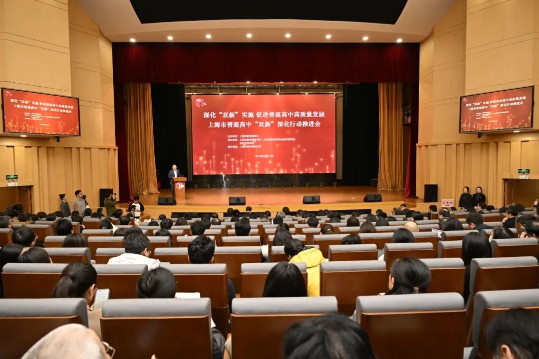为深入推进普通高中课程教学改革和普通高中新课程新教材实施工作,促进普通高中高质量发展,2月27日,上海市普通高中“双新”深化行动推进会在上海市南洋模范中学召开。上海市教育委员会副主任杨振峰,徐汇区副区长王志华、原颖娜,上海市教师教育学院(上海市教育委员会教学研究室)院长王洋,市教委相关处室及直属单位相关负责同志,各区教育局、教育学院相关负责同志,本市普通高中学校校长参加会议。