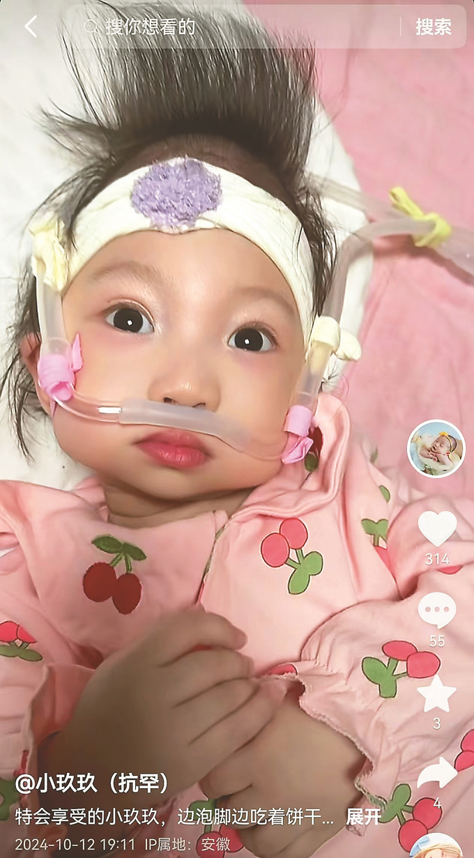 “小玖玖(抗罕)”这个抖音账号,迄今已发布209条短视频。镜头里的孩子依然可爱,黑葡萄般的眼睛亮晶晶的,但再没离开过无创式呼吸机。