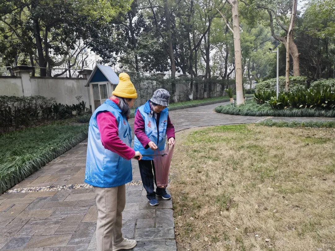 2月27日上午,志愿者们带上垃圾钳和垃圾袋,兵分两组开始行动。无论是小区路面上随风飘动的纸屑,还是花坛里隐藏的杂物,抑或绿化带中不易察觉的烟蒂,都被志愿者们一一清理干净。大家齐心协力,不怕脏、不怕累,捡垃圾和撑袋子,互相配合默契,有条不紊地推进清洁工作。在众人的共同努力下,小区环境得到显著改善,面貌焕然一新。