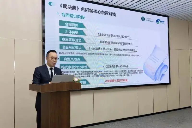 黄浦区中小企业服务中心还介绍了中小企业产业融通、特色产业集群等政策,区公益律师团以 “中小企业合同管理与合规体系建设”为主题,结合典型案例做了分享。