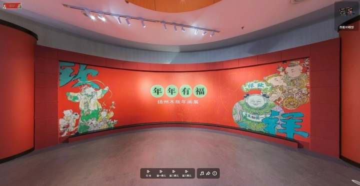 此次线上展厅将扬州木版年画 “搬到云端”,通过高精度的全景拍摄技术和三维建模技术,力求还原展厅的真实场景,让观众仿佛置身于真实的展厅之中。进入观展页面后,随着悠扬的背景音乐响起,观众便能以“720全景+全媒体阅读”的全新方式感受扬州木版年画的魅力。同时,展览融入了互动元素,观众可通过点击展品获取详细介绍,深入了解木版年画的历史背景、制作工艺及文化寓意。