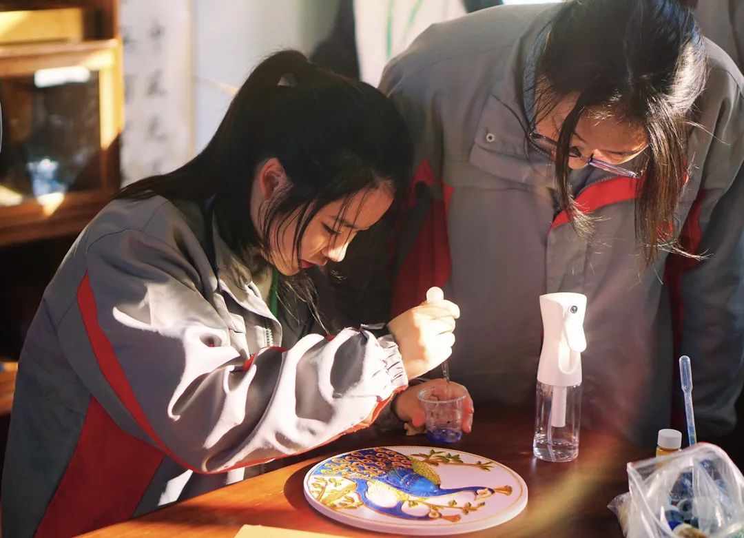获奖师生表示,成绩的取得离不开学校的全力支持。近年来,上海食品科技学校致力于中华优秀传统文化的传承与创新,走出了一条特色鲜明的非遗培育之路。学校通过开设岩彩珐琅、京剧、金山农民画等30余个特色拓展课程和社团,打造了“课程教学+校园活动+社会实践”的传统文化育人模式。其中,龚恬苇开设的“山石绘梦・岩彩珐琅”特色拓展课程,成为了学校传承非遗文化的重要窗口。