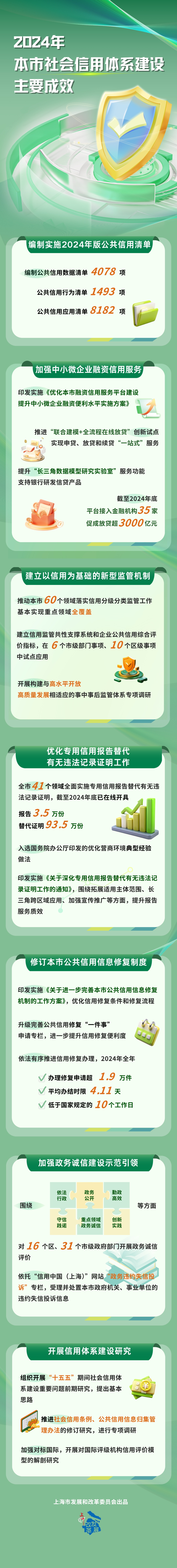 编制实施2024年版公共信用清单、促成放贷超3000亿元、在线开具专用信用报告3.5万份、全年办理修复申请超1.9万件......一起回顾2024年上海信用体系建设进展↓