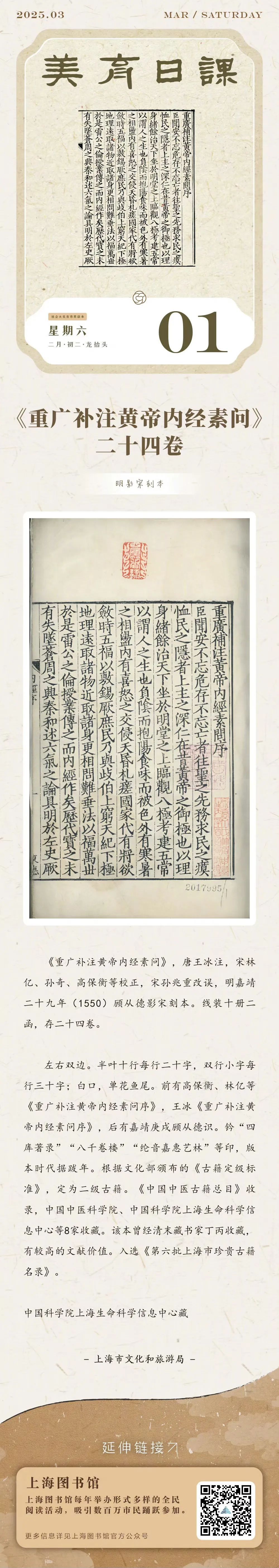 美育日课 | 《重广补注皇帝内经素问》二十四卷:明影宋刻本