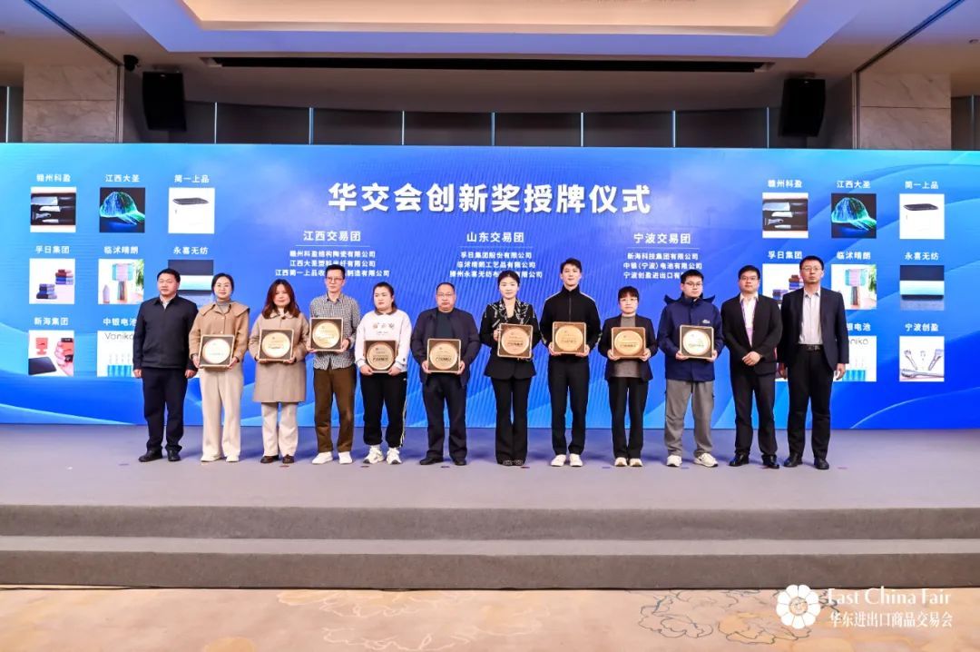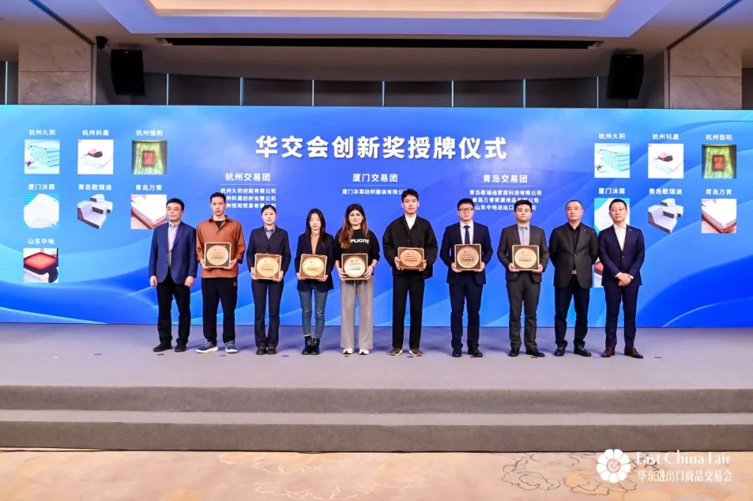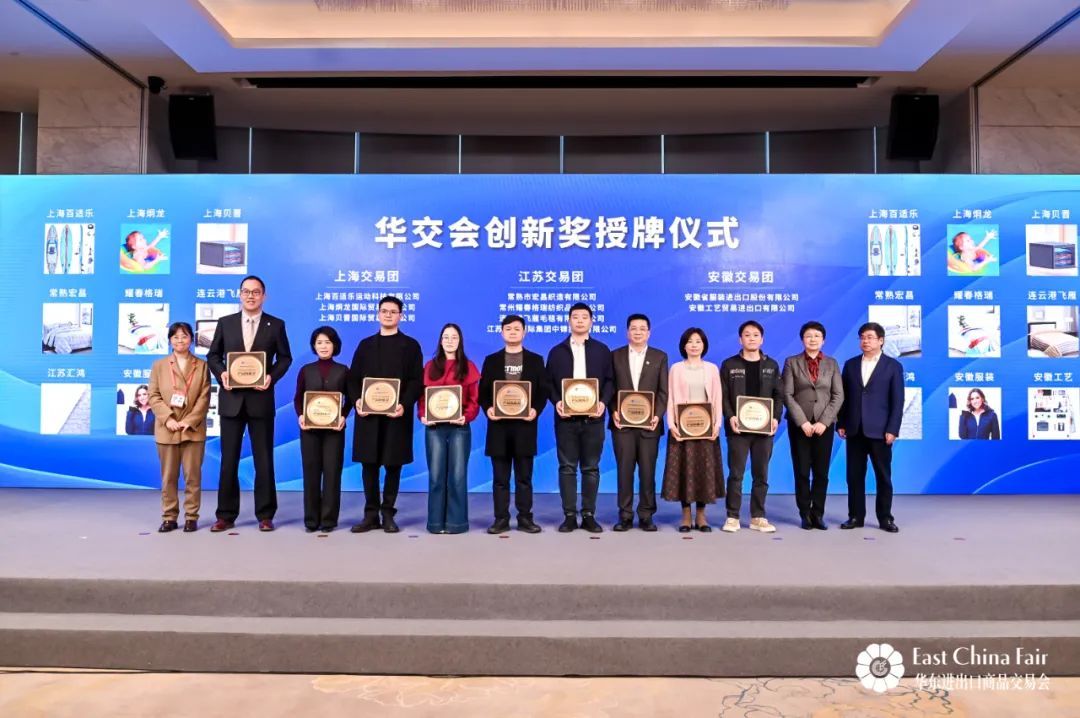 随后,现场还举行了华交会“产品创新奖”授牌仪式,分别对来自上海、江苏、安徽、浙江、福建、南京、江西、山东、宁波,以及杭州、厦门、青岛、联合、境外、跨境交易团等省市和组织的44家优秀外贸企业授牌。