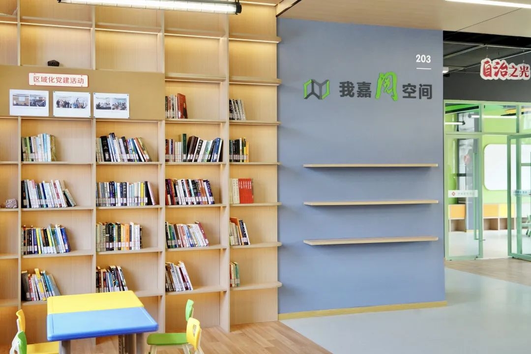 邻里中心1号主楼二层为共享区域,设有共享厨房、我嘉阅空间、共享休闲区、文体综合活动室、老年活动室、宝宝屋等。四层为多功能活动厅,可承接容纳最多150人举办会务、培训及群文展演活动。