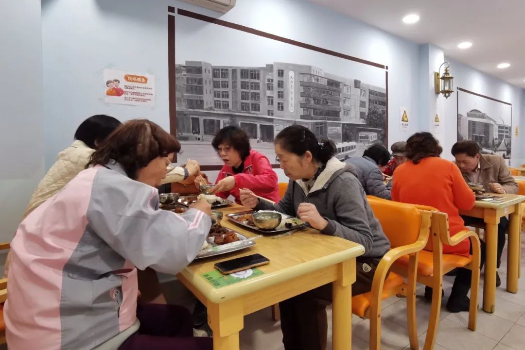 当记者来到位于天山四村122号的天山路街道老年人日间服务中心社区长者食堂时,社区老人们已经领到热气腾腾、色香味俱全的餐点,正坐在餐厅内大快朵颐。