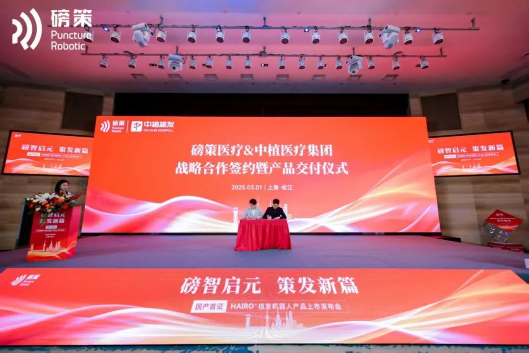 发布会上,磅策医疗与中植医疗集团、美呗医美、大麦微针植发和安徽美赋医疗达成合作。这场覆盖了“技术赋能者—行业标杆—流量枢纽—区域龙头”的全生态联盟,将以智能化重塑植发产业价值链。