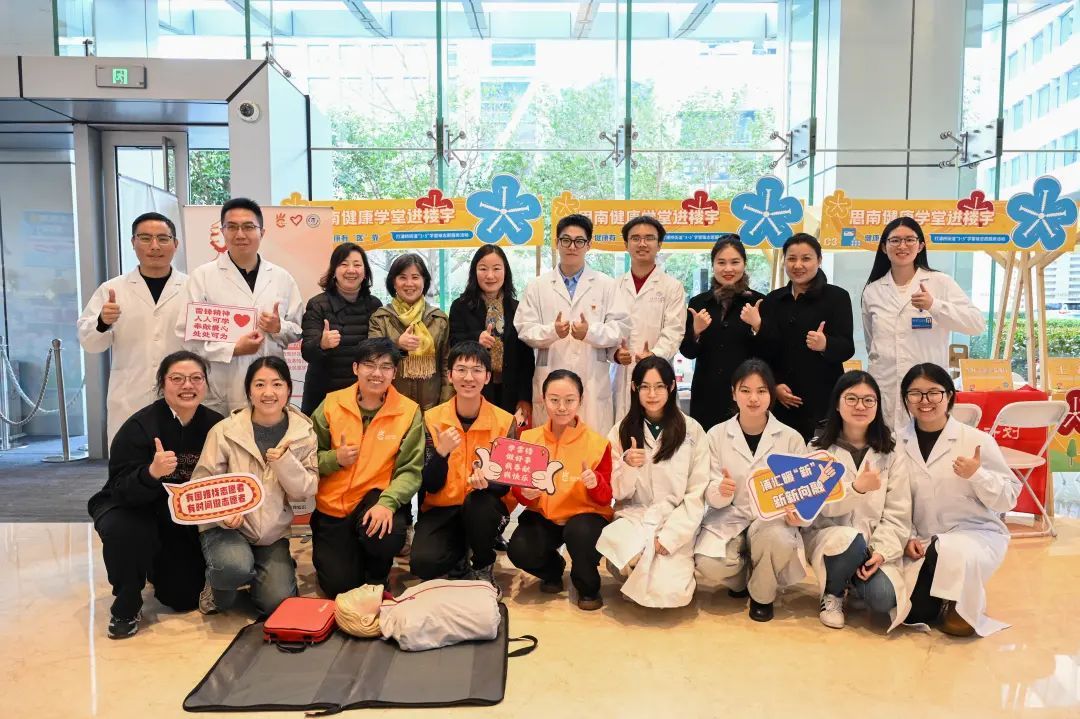 区委副书记李忠兴,永业集团党委书记、董事长戴金梁,打浦桥街道党工委书记、人大工委主任姜敏,上海交通大学医学院团委书记游佳琳登台共同启动“思南健康学堂进楼宇”项目。
