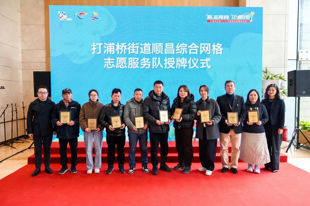 区委社会工作部副部长江健与打浦桥街道办事处副主任、顺昌综合网格党委书记张睿婧共同为志愿者代表授牌。