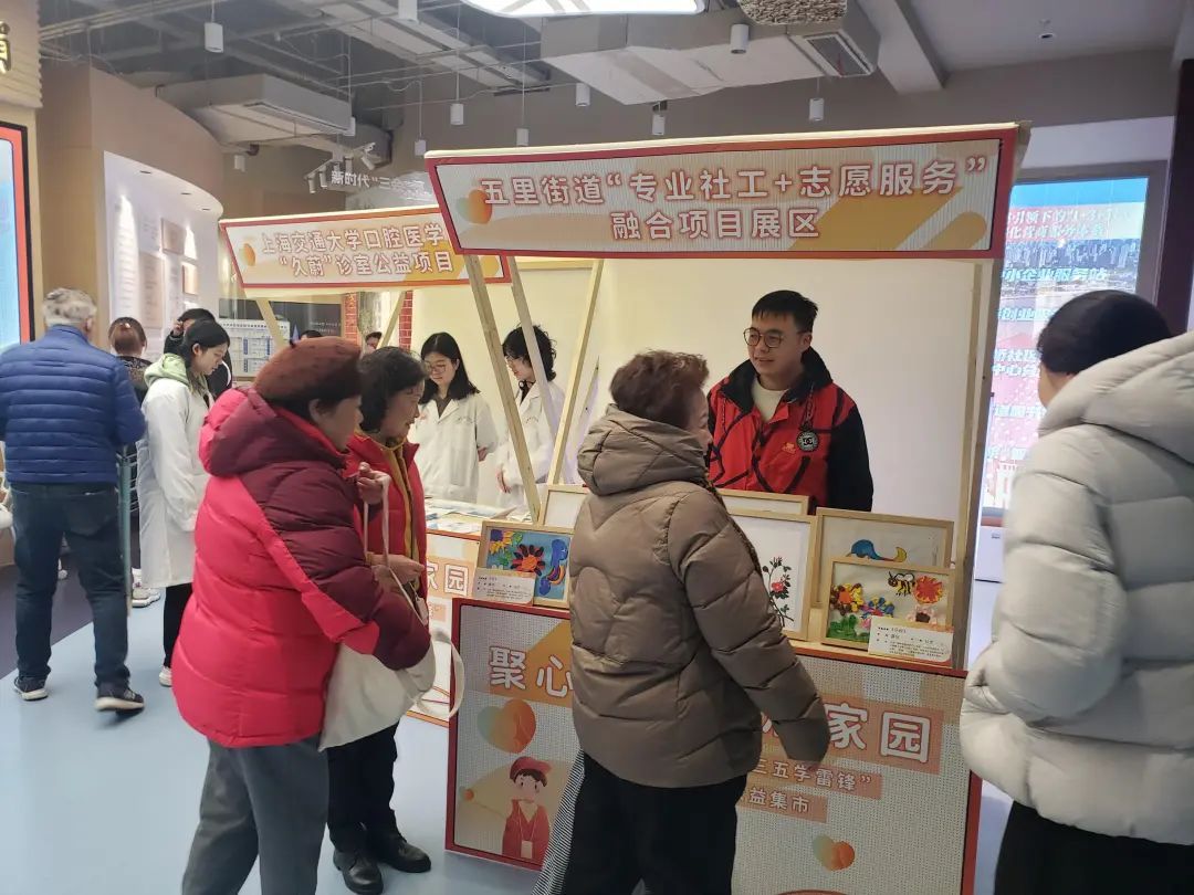 活动现场,展示了“益+志愿”服务项目, 该项目是由五里桥街道志愿者协会携手黄浦区特殊教育职业学校联合开展的公益志愿项目,通过“杏福店长”志愿者结对培智学生开展咖啡制作实践,助力5名学生考取职业资格证并成功就业,该项目荣获第七届中国青年志愿服务项目大赛金奖。五里桥社区社会组织服务中心开展公益义卖,同步结合前期对居民区走访调研情况,开展针对性志愿者招募,推动社会工作服务和志愿服务在助力基层治理中发挥更大作用。