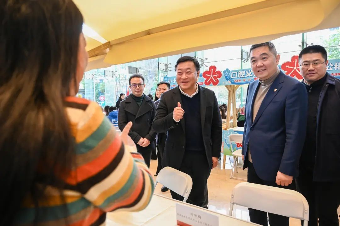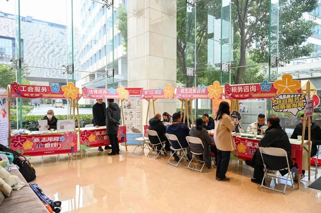 仪式现场,一场别开生面的公益集市热闹开市,34个摊位有序排列,涵盖了健康义诊、企业服务、花艺美学、爱心义卖、教育指导、工会服务、法律咨询、就业服务、税务咨询等丰富的服务项目,通过 “志愿聚‘新’力、健康有‘医’靠、便民‘邻’距离”3大区域,全方位、多层次地为市民提供贴心服务,切实推动志愿服务与街区发展深度融合。