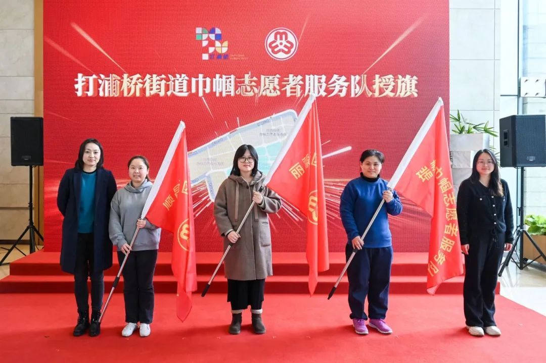 黄浦区妇联副主席许静子,打浦桥街道党工委副书记、总工会主席易敏婕为街道三个街区巾帼志愿者代表授旗,激励广大巾帼志愿者在社区治理中绽放别样芳华。