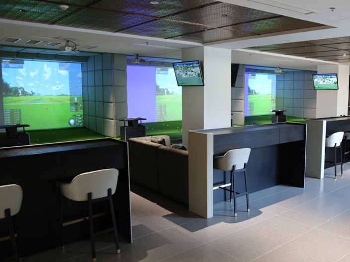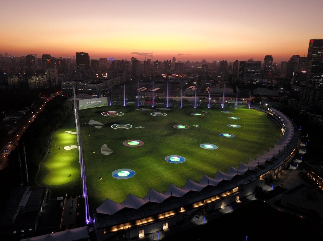 作为改造核心的PLAYGOLF CLUB高尔夫项目,以8万平方米的练习场规模问鼎亚洲之最,配备240个全自动送球打位、1400米真草切推果岭及14个真草练习打位,并突破性实现灯光交互系统,13个灯光果岭可满足夜间沉浸式训练。同时,在小程序可实现自助预订、开打位、点餐等全流程服务,运营智能化使得效率较传统球场有了显著提升。