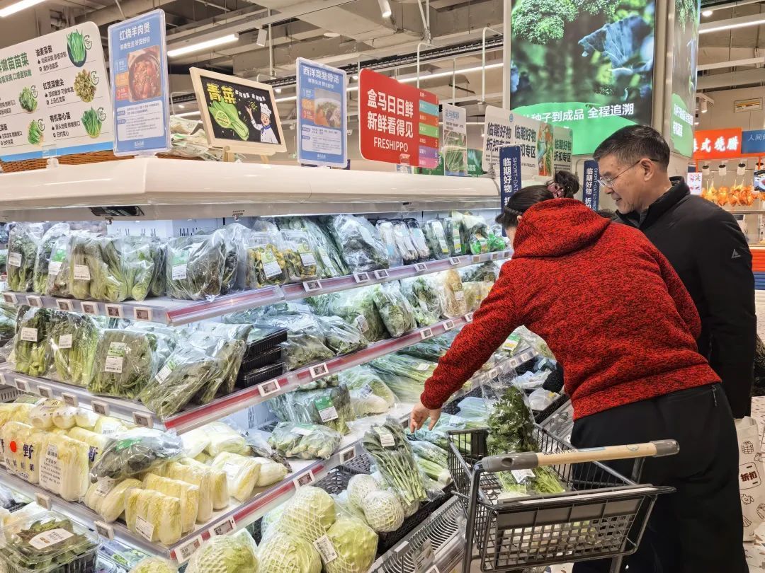 3月4日,记者在盒马鲜生嘉定万达店蔬菜区看到,不时有市民前来选购蔬菜。在春菜专区,板蓝根青菜赫然在列,吸引了一些消费者的目光。“听工作人员介绍板蓝根青菜比较营养,我想试试看味道怎么样。”市民刘玉峡表示。