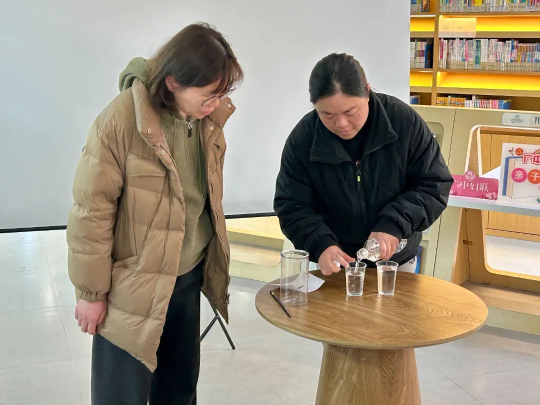 “当我们把筷子插进倒满水的杯子里,小朋友们,你们觉得筷子会发生怎样的变化?”自然科学组用数个简单有趣的物理小实验,讲述了光的折射原理。“我们准备将物理实验课做成一个系列,通过与导师学习沟通,不断积累经验,未来给社区里的小朋友带去更加精彩的节目。” 来自商业一村居委的自然科学组组长李菲说。