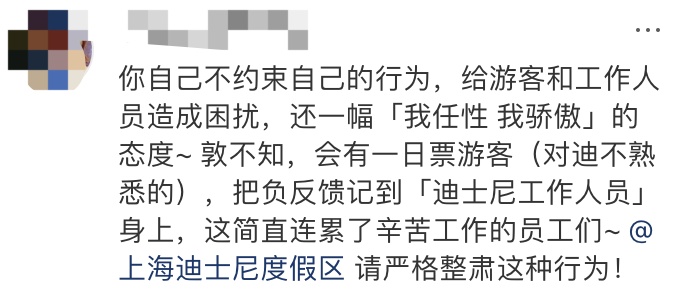 对此,迪士尼官方客服表示:假扮工作人员的行为在迪士尼是禁止的,如看见此类行为可以向游客中心或就近找演职人员进行反馈处理。