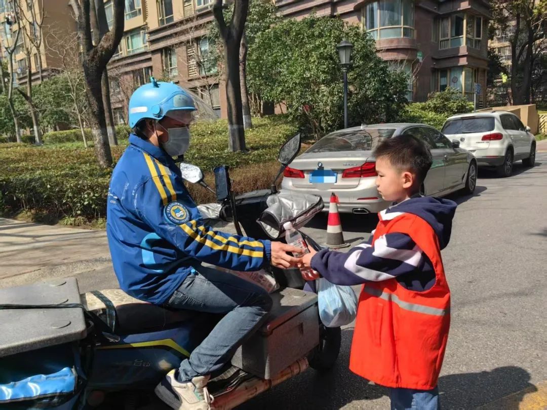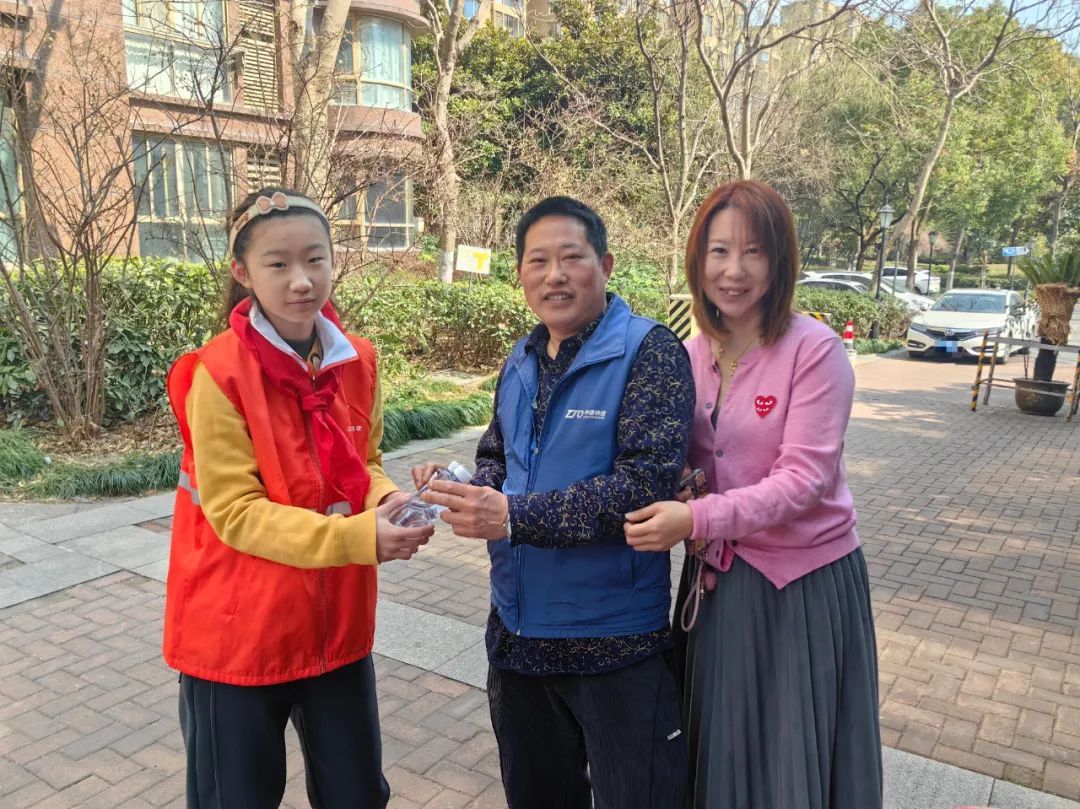 宝邸宝宝们带着敬意和感激,向小区的保洁阿姨、保安叔叔以及快递员叔叔等劳动者们献上了自己精心准备的爱心礼物与矿泉水,感谢他们用辛勤的汗水换来了社区的整洁与安宁。