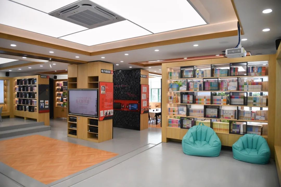 这是一个与众不同的图书馆,凸显着红色文化教育内容,倡导自主学习和管理,是一个有趣味的体验课堂;同时丰富情感感受和体验,是一个有创意的实践课堂;提供“多场景模式”沉浸式空间,是一个有温度的德育课堂。