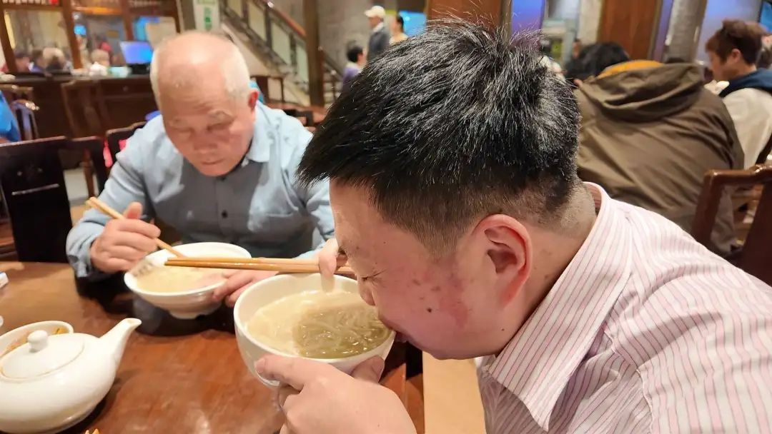 老半斋不搞网红营销,七年来硬是冻住价格:二两面36元,三两只加3元。在这动辄百元一碗的“消费升级”时代,这份固执倒显出几分不合时宜的可爱——仿佛跑堂阿姨那句“要吃就吃,不吃拉倒”的沪语呵斥,才是本帮味道中最地道的佐料。