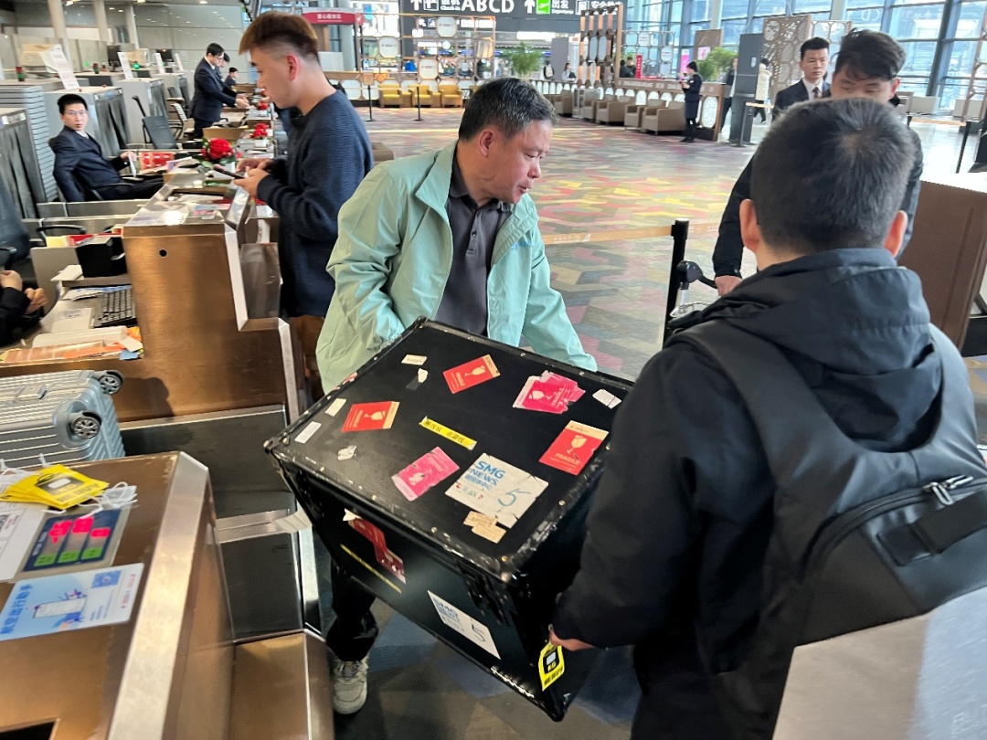 技术保障团队将设备运送至两会前方