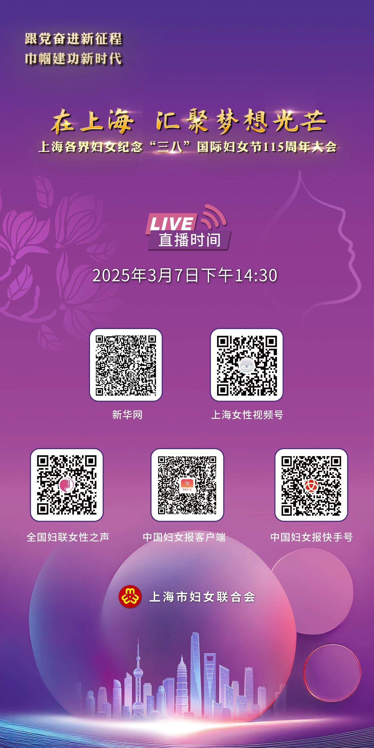 直播预告:上海各界妇女纪念“三八”国际妇女节115周年大会